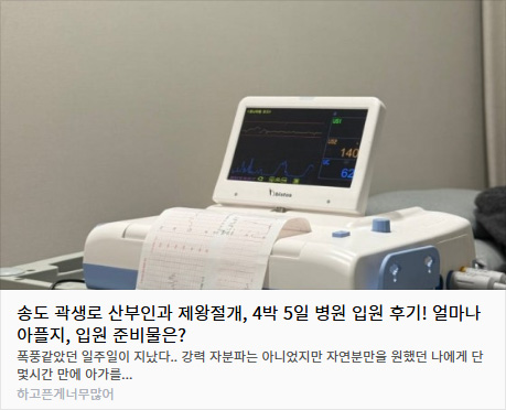 | 제목 | 응급 제왕절개 긴급 상황 극복! 곽생로 산부인과 4박 5일 출산 기록 | ||